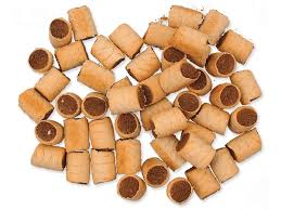 Krmný návod: psům o hmotnosti do 15 kg podávejte 2 ks, psům o hmotnosti 15 až 30 kg podávejte 4 ks a psům o hmotnosti nad 30 kg podávejte 6 ks denně jako pochoutku či odměnu.