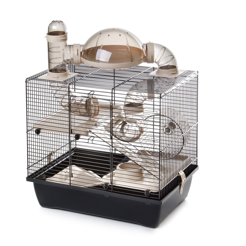 Klec s oblíbeným labiryntem pro malé hlodavce, hlavně křečky. Součástí klece je kolotoč, domeček,